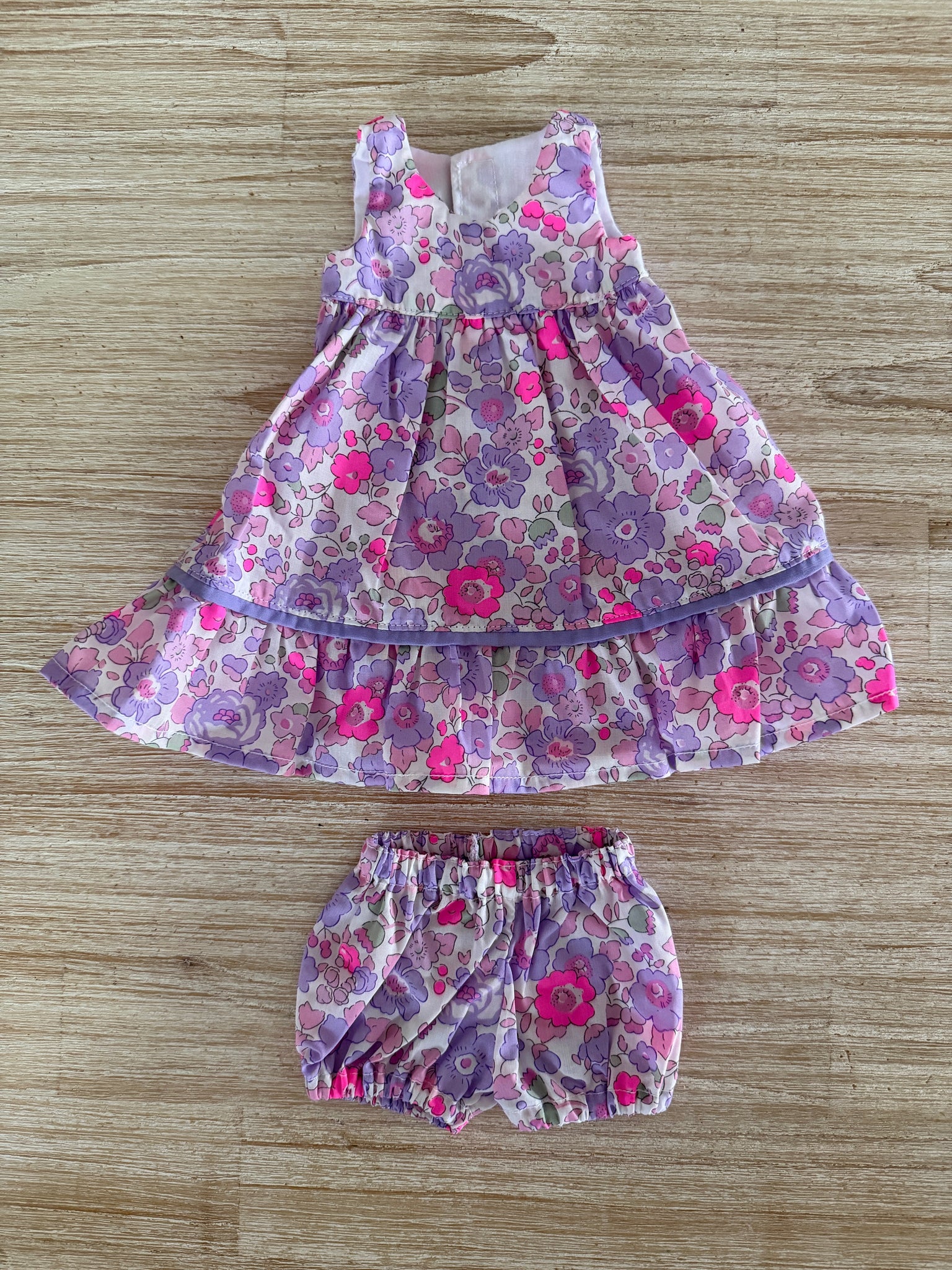 This cute ensemble includes our dolly bloomer. Featuring details such as fully encased elastic.