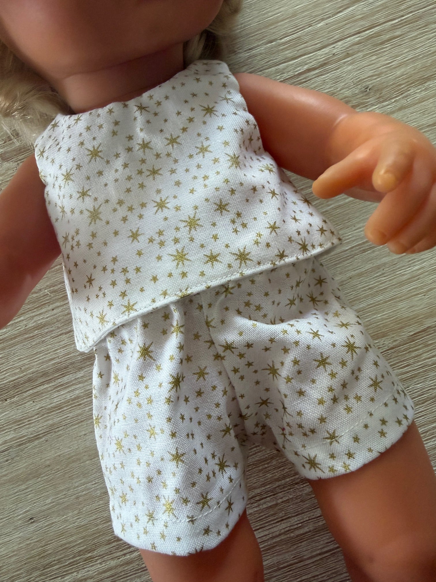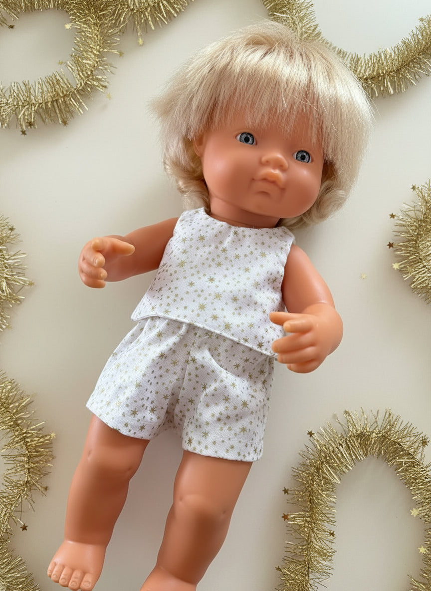 Shorts Set to suit 38cm Miniland - Christmas - Gold Stars on White